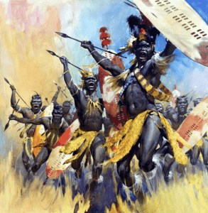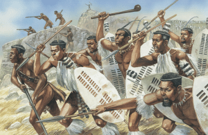 They had some clubs (the British called those “knobkerries”) and throwing spears (asegais), but the preferred tool of the Zulu warrior was the iKlwa, a short, broad bladed stabber. The shaft of that spear was not long enough to balance it for throwing. It needed to be used at smell-his-breath distance, and since it hadn’t been thrown away, it could be used over and over and over.