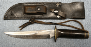 What Americans now call “the rust belt,” from the Great Lakes to Pittsburg and into New England, was once the Arsenal of Democracy, America’s equivalent to the “Street of Steel” in George R. R. Martin’s capital city of “King’s Landing.” One company of very real US armorers was Marble Arms Company of Gladstone, Michigan. When Marble Arms originally designed the JPSK in the 1950s, it had a 6-inch blade. It widened toward the front, nowhere near the broad blade of a Philippine bolo or a Nepalese kukhuri, but every bit a full-bellied, clip point Bowie, in at least its second trimester of pregnancy.