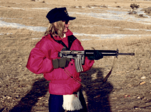 This Sterling AR-180 (without a light), and the lady shooting it, were both imports from England in the 1980s.