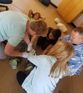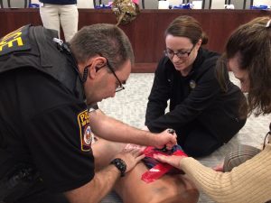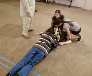 In a First Aid / CPR / AED class, this phase might include a mass-casualty, triage and treatment exercise using readily available materials such as clothing in lieu of a first aid kit. As with the Managing Violence classes, you will learn how to lead a group with mixed, or few, medical skills to unified, productive effort.